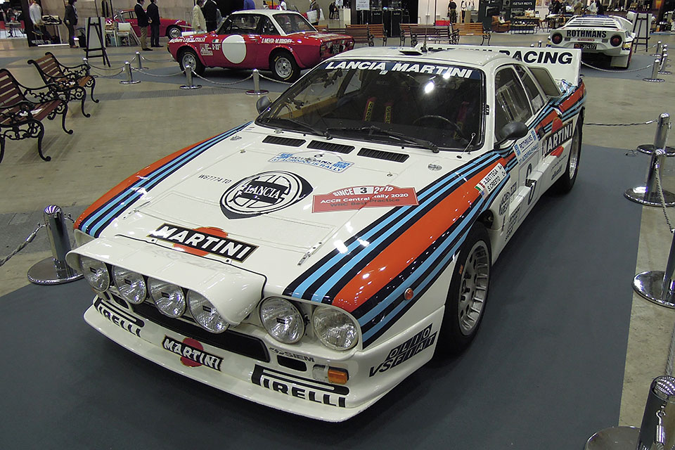 中央の主催者ブースには「ランチア・ラリー 037 エボリューション2」、「ランチャ・ストラトス HF Gr.4」、「ランチャ・フルヴィア クーペ 1.6HF」、「フィアット・ アバルト 131ラリー」が展示され、数多くの来場者の注目を集めていました。